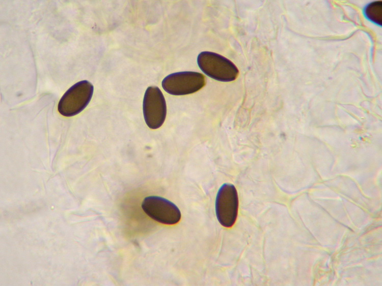 Psathyrella supernula (Britzelm.) Örstadius & Enderle, Sporen am Hut, in KOH