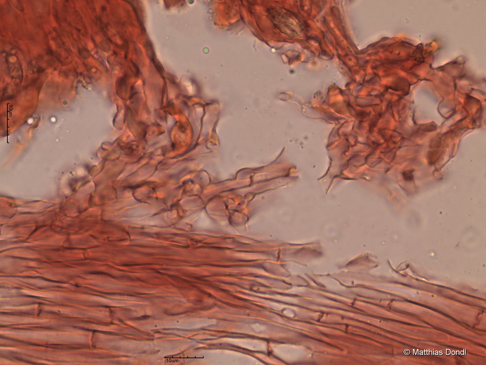 Hymenium und Trama (in der Bildmitte Schnalle im Subhymenium?)