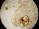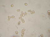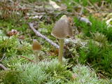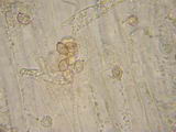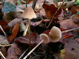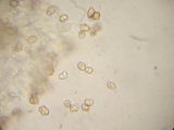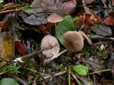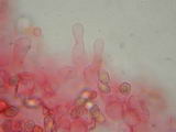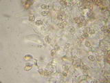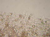 | Funddaten: 07/23.11.06, MTB 7935/3/1/1, 550 m, Isarauen Höllriegelskreuth; im Mischwald, bei Esche, Ulme, Buche und Ahorn (weiter entfernt auch Fichten), in gemischter Streu, auffallend oft an Steinen wurzelnd;; Hut: bis 5,5 cm breit, mit schwach eingesenkter Papille, glatt bis feinsamtig, dunkel graubraun, zu 2/3 durchscheinend gerieft, hygrophan, grauocker ausblassend; Stiel: bis 10 cm lang, bis 0,5 cm dick, lang dünn und gebrechlich (Habitus ähnlich E. hirtipes), zylindrisch, hohl, basal schwach verdickt, längsfaserig-streifig, dunkel graubraun bis olivbraun, apikal weißlich bereift, darunter weißlich überfasert, zur Basis hin mit dickem weißen Filz überzogen; Lamellen: schmal angeheftet, dünn, gedrängt, bauchig, hell rosabraun, Schneiden glatt, gleichfarben, ungleichmäßig (wellig); Fleisch: dünnfleischig, wässerig graubraun; Geruch: mehlig (mäßig intensiv, aber deutlich); Geschmack: mild, mehlig; Lamellentrama: -; Huttrama: Huttramazellen: endlos lang (z.B. 450 µm); Basidien: 4-sporig, keine deutlichen Basalschnallen gesehen (aber nicht ausgeschlossen); bei den anderen beiden Kollektionen Basalschnallen vorhanden; Cheilozystiden: polyform, 23x10 (flaschenf.), 27x7 (geknickt zylindrisch), 26x9 (spindelig-bauchig), 22x7 (geknickt zylindrisch), recht unauffällig und nicht sehr zahlreich in der fertilen (also heterogenen) Lamellenschneide steckend; Pleurozystiden: keine beobachtet; HDS: Cutis, Endzellen recht verschieden, meist zylindrisch bis keulig, z.B. 50x25, 65x20, 55x7, 30x10, grundsätzlich Hyphen aus relativ dicken, kettenartig angeordneten Zellen und relativ schmalen, zylindrischen bis schwach keuligen Zellen, wobei meist nur letzter schwach bräunlich pigmentiert sind (flächig, nicht inkrustiert); keine Schnallen in der HDS; Sporen: 6-8-eckig, 9,1 x 6,5 (8-10,5 x 6-7), Q=1,4 (1,3-1,5), 20 Sp. gemessen; Kollektion 2: 9,3 x 6,4 (8,5-10 x 6-7), Q=1,45 (1,3-1,5); Kollektion 3: 10,2 x 6,6 (9,5-11 x 6-7), Q=1,56 (1,4-1,7; Sporenpulver: -; Bestimmung: alle 3 Kollektionen sind E. hebes; |