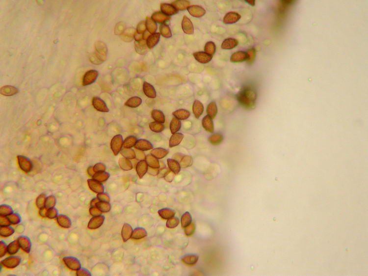 Sporen an der Lamellenfläche in KOH (400x)