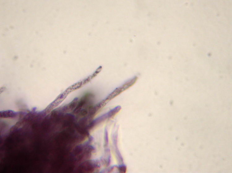 HDS-Hyphen mit Inkrustationen nach CF-Färbung und Auswaschung in HCl