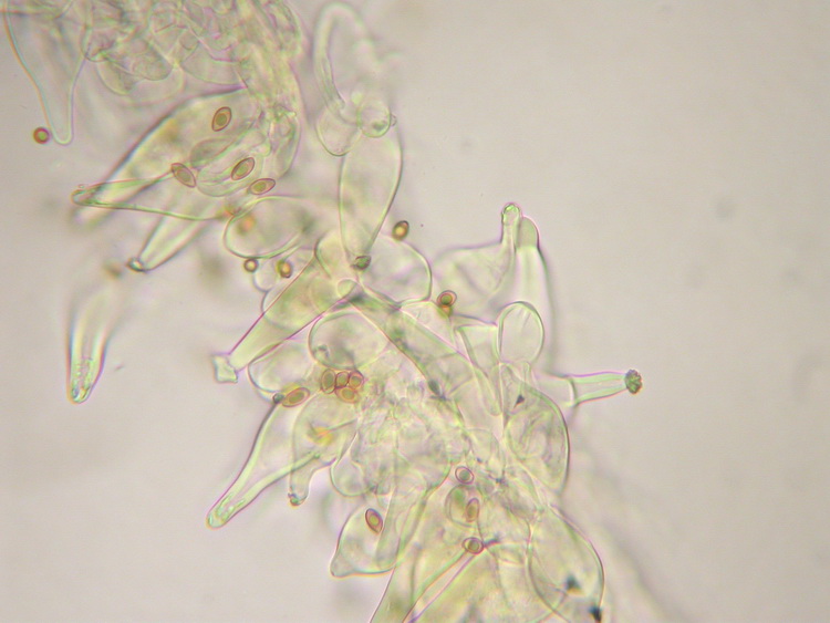 Sporen und Kaulozystiden im oberen Stieldrittel