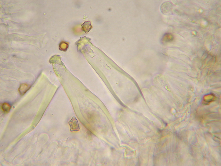Inocybe rufoalba (Pat.&Doass.) Sacc.; Pleurozystiden, in KOH