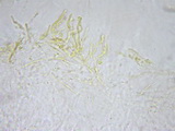 HDS: Ixotrichoderm, ca. 200 µm dick, Zellen aufsteigend, stark gelifiziert, in der obersten Lage oft mit intrazellulär gelb pigmentierten, fast büscheligen, aufgerichteten Endzellen, diese zylindrisch, ca. 3-4 µm breit und mit abgerundetem Apex, bisw. mit kristallartigen Auflagerungen (keine typischen Inkrustationen);