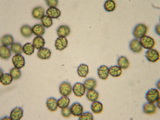Sporen: breit ellipsoid; Ornament aus einzelnen, meist verlängerten Warzen und oft sehr langen Graten, Maschen nur ganz sporadisch, Grate oft recht schütter angeordnet, selten zebramusterartig, ca. 0,5 µ hoch; Maße: 7,5 x 6,1 (6-9 x 5-7), Q=1,22 (1,08-1,42);