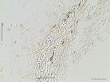 HDS: Ixocutis, Zellen stark auseinandergetrieben, teils gelifiziert, hyalin oder intrazellulär gelb pigmentiert, in Hypodermnähe auch feinst inkrustiert; Hypoderm deutlich entwickelt, Zellen ca. 5-15 breit, dickwandig und mit blassgelbem Dickwandpigment;