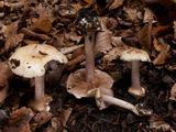 Stiel: bis 2,5 x 0,2, basal schwach erweitert, schmutzig hellbraun, zur Basis hin und alt dunkler braun, im unteren Drittel stark weiß überfasert, sonst normal faserig; Velum praktisch nicht feststellbar, nach den Resten am Hutrand zu schließen aber eher weißlich;