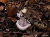 Stiel: bis 5 x 1,5 cm, gerandet knollig, lila, an der Spitze so bleibend; Knolle breit gerandet, bis 3 cm breit, basal abgeflacht bis flach konisch eingesenkt, Unterseite weißlich bis blass lila; Velum am Knollenrand blass lila; Basalmyzel weiß;