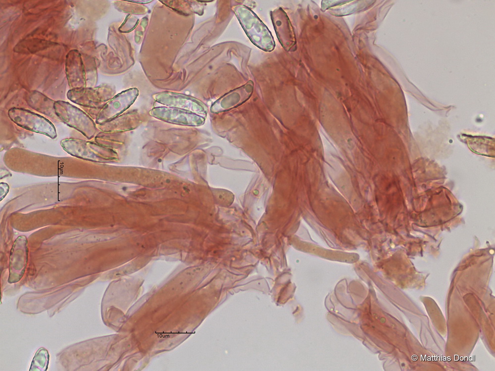 Sporen und Hymenium (Schnalle in der Bildmitte)