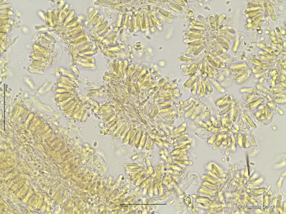 Sporen, Hymenium und Lamellentrama in Melzer