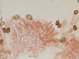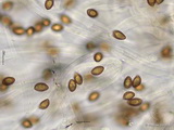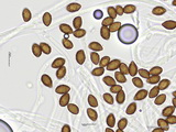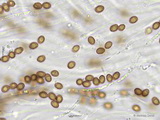 Sporen: breit amygdaloid, mäßig grob warzig, im Umriss rau; Maße: 10,0 x 6,3 (9,4-11 x 5,7-6,7), Q=1,60, 10 Sp. gemessen;