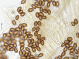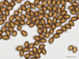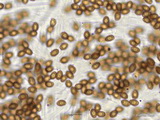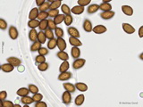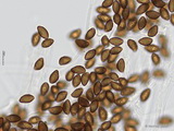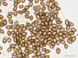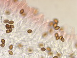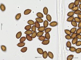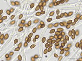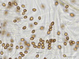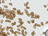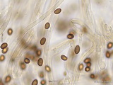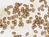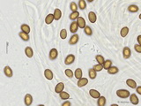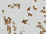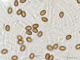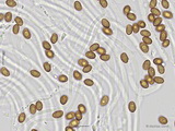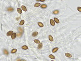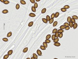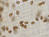 Sporen: ellipsoid, mit mittelbreit gerundetem Apex; fein warzig, im Umriss rau; Maße: 8,4 x 5,2 (7,2-9,8 x 4,8-5,7), Q=1,60 (1,44-1,76), 20 Sp. gemessen;