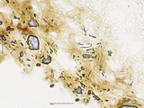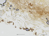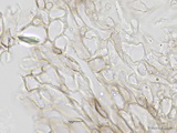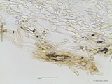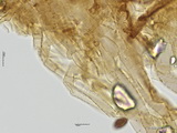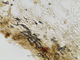 HDS: Ixocutis, Epicutishyphen (und/oder Velumhyphen) mit einer lichtbrechenden, körnigen Substanz inkrustiert, mit Schnallen;
