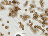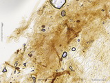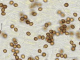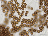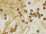 Sporen: subglobos, fein warzig, im Umriss nahezu glatt, Maße: 8,1 x 7,2 (7,2-8,9 x 6,5-7,7), Q=1,13 (1,08-1,22), 20 Sp. gemessen;