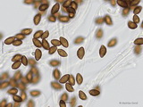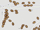 Sporen: amygdaloid, mittelgrob warzig, im Umriss grob rau; Maße: 8,1 x 5,1 (7,2-9 x 4,9-5,4), Q=1,58 (1,47-1,70), 20 Sp. gemessen;
