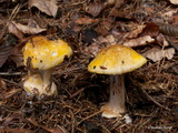 Stiel: bis 6 x 2 cm, keulig, weiß, mit gelbem, angedrücktem Velum;