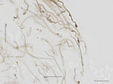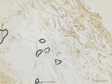 HDS: trockene, mäßig dicke Cutis, simplex, Hypoderm nicht entwickelt; Zellen der Epicutis intakt, mit gelbem bis bernsteinfarbenem Wandpigment mit grobem querstreifigen Inkrustationen, stellenweise auch mit bernsteinfarbenem intrazellulärem Pigment;