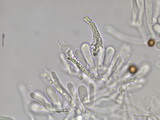 Lamellenschneide: subfertil, mit vielen sterilen, oft auffallend schlanken Zellen, die aber wohl doch eher Basidiolen sind, da sie auch an der Lamellenfläche vorhanden sind;