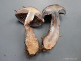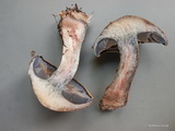 Fleisch: im Hut weiß, im Stiel blau, in der Knolle cremegelb, siehe Schnittbild;