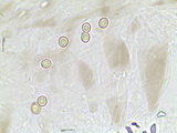 Sporen: rundlich, Maße: 6,6 x 5,6 (6,0-7,0 x 5,1-6,2), Q=1,18 (1,10-1,29), 20 Sp. gemessen;