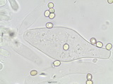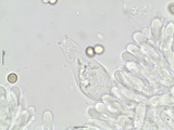 Pleurozystiden: utriform, subutriform oder bauchig fusoid, mit breitem, schmalem oder fehlendem Halsteil, ohne Schnallen, ca. 52-84 x 11-29;