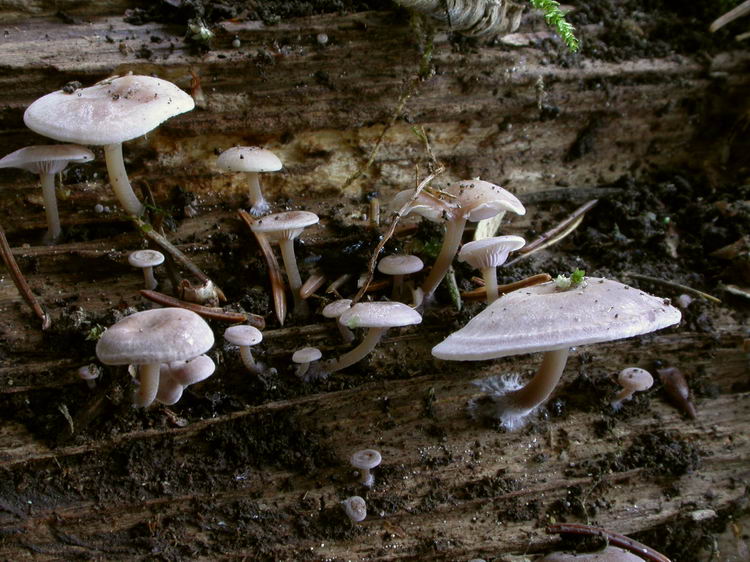 | Beschreibung: | Hut: 0,5-3 cm breit, im Zentrum bisweilen schwach genabelt, Oberfläche glatt, trocken, hygrophan, Rand bisweilen durchscheinend gerieft, graubraun, oft mit Violettstich, ockerlich ausblassend;