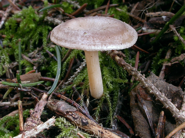 | Beschreibung: | 2,5-4 cm breit, immer genabelt, gewölbt, bisweilen auch stark aufgebogen, Hutrand schwach gerieft, leicht hygrophan, graubraun, durch Austrocknung ausblassend; Stiel: bis 4cm lang, bis 7 mm dick, zylindrisch, basal bisweilen etwas zugespitzt und mit kräftigen Myzelrhizoiden ("Würzelchen"); cremefarben bis beige; Lamellen: breit angewachsen bis etwas herablaufend, untermischt, cremefarben; Fleisch: weißlich bis wässerig grau oder cremefarben; Geruch: unauffällig; Geschmack: mild, schwach ranzig ; Lamellentrama: -; Basidien: 4-sporig, schlankkeulig mit Basalschnalle; Cheilozystiden: -; Pleurozystiden: -; HDS: -; Sporen: elliptisch, hyalin, 5-7 x 3-4; |