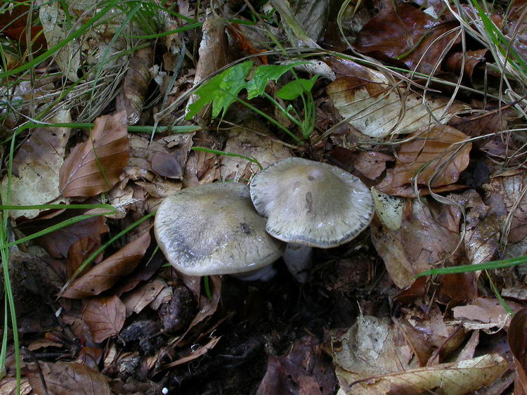 Fleisch: schmutzig-weiß, über den Lamellen mit dunkelgrauer hyaliner Zone, in der Stielspitze (vor allem in der Rinde) mit blaugrauer Zone, in der Basis stellenweise orangebraun verfärbend;