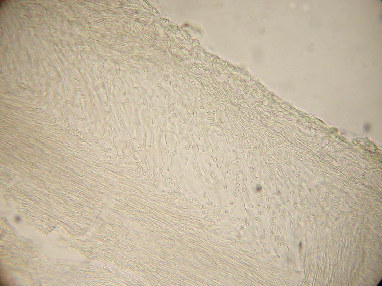 Hohenbuehelia auriscalpium (Späne-Muscheling) - Bild 4 HDS-Radialschnitt, in KOH |
