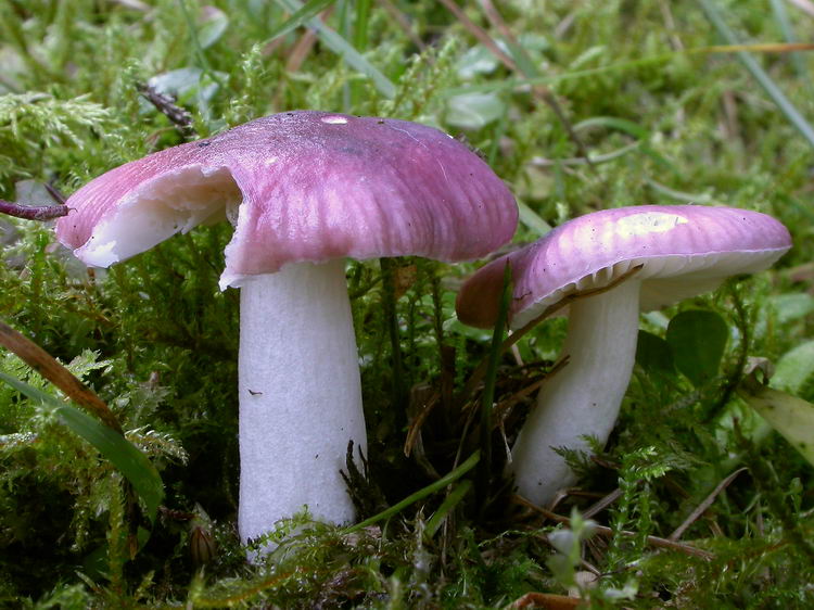 | Beschreibung: | Hut: 3,5-5 cm breit, violett, Mitte dunkler weinrot, Rand heller rosa-violett; Hutrand gerieft; Stiel: 4-5,5 cm lang, zylindrisch bis schwach keulig, innen schwammig bis wattig, weiß bis cremefarben, fein längsrillig, bisweilen schwach gelblich verfärbend, vor allem basal; Lamellen: cremefarben, brüchig; Fleisch: weiß; Geruch: angenehm obstartig (Pelargonium?); Geschmack: scharf (Lamellen und Fleisch); Sporen: rundlich, 8,5-10 x 6,5-8; Ornament: warzig, bisweilen gratig verbunden, kaum netzig, bis 1 µm vorstehend; Sporenpulver: cremefarben; Chemie: Stieloberfläche und Trama mit NH3 schön rosa;