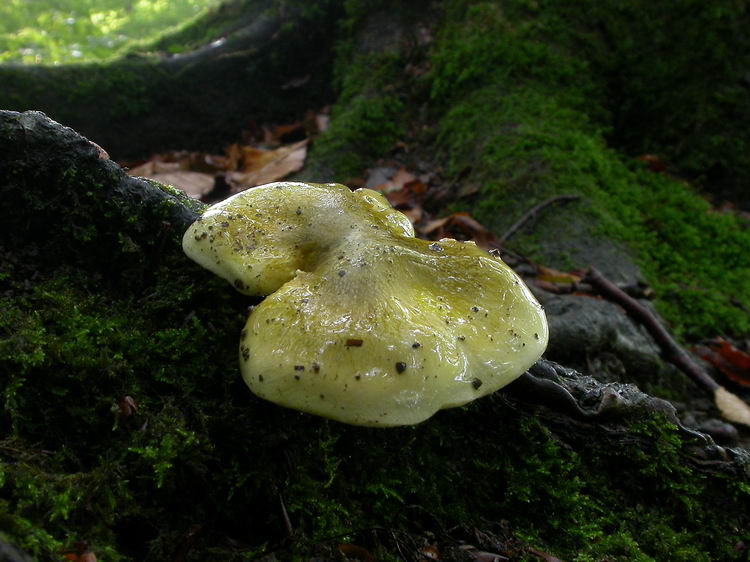 | Beschreibung: | Hut: 6-7 cm breit, schwach gebuckelt, unregelmäßig, bisweilen gelappt, eingewachsen faserig, feucht schmierig und etwas klebrig, olivgrünlich-olivgelb, am Scheitel dunkler olivbraun und angedrückt feinschuppig, Rand heller blassgelb bis weißlich;