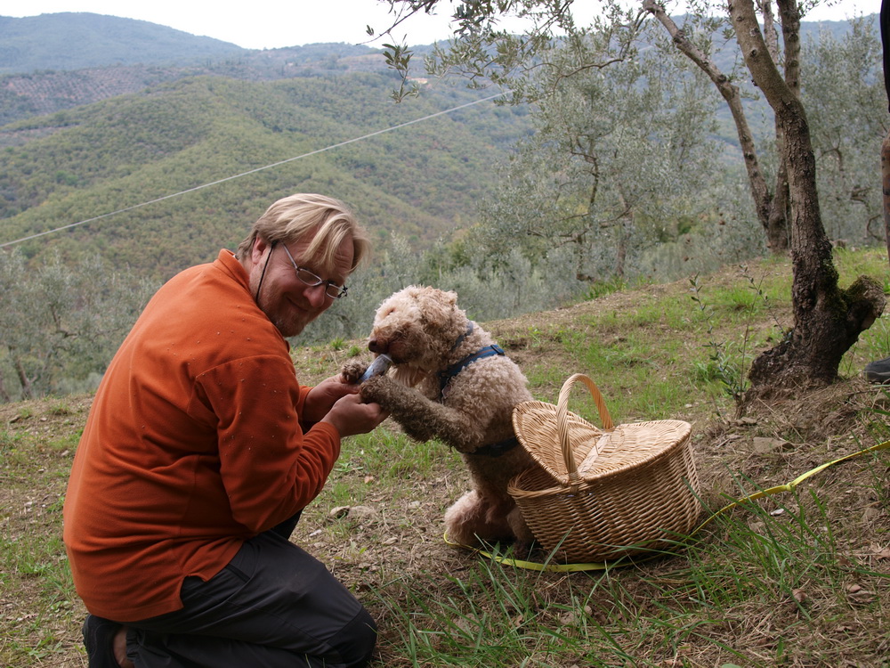 Auch unser Freund Peter war im Oktober im Agriturismo S. Stefano einquartiert - als Führer einer Gruppe von Touristen, die dort eine Pilz- und Trüffelwoche verbrachten. Nach Sucherfolgen wurde Trüffelhund Snoopy mit Leberwurst aus der Tube abgespeist. Vermutlich aus Protest gegen diese miserable Behandlung hat er sich in Marinellas Küche geschlichen und ein ganzes Blech Kuchen abgeräumt.